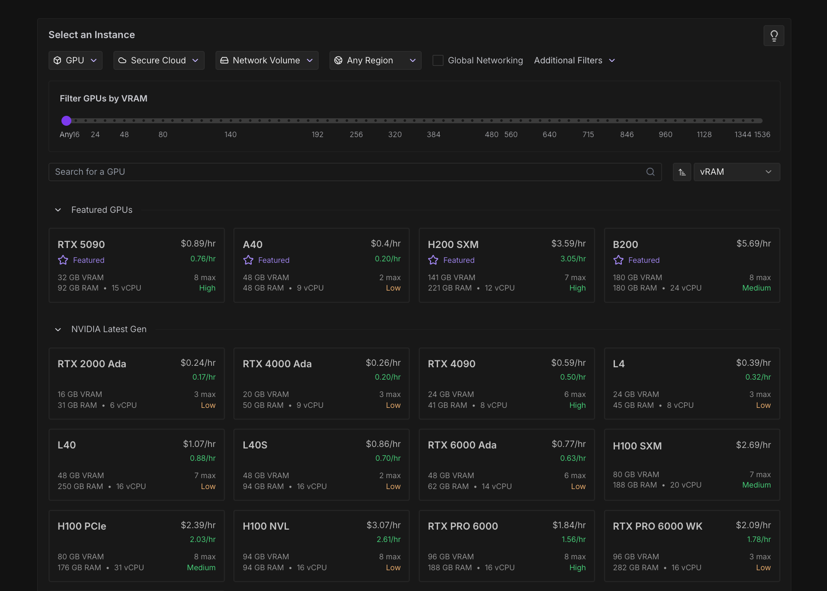 - Community Cloud: Connects individual compute providers to users through a vetted, secure peer-to-peer system, with competitive pricing options.